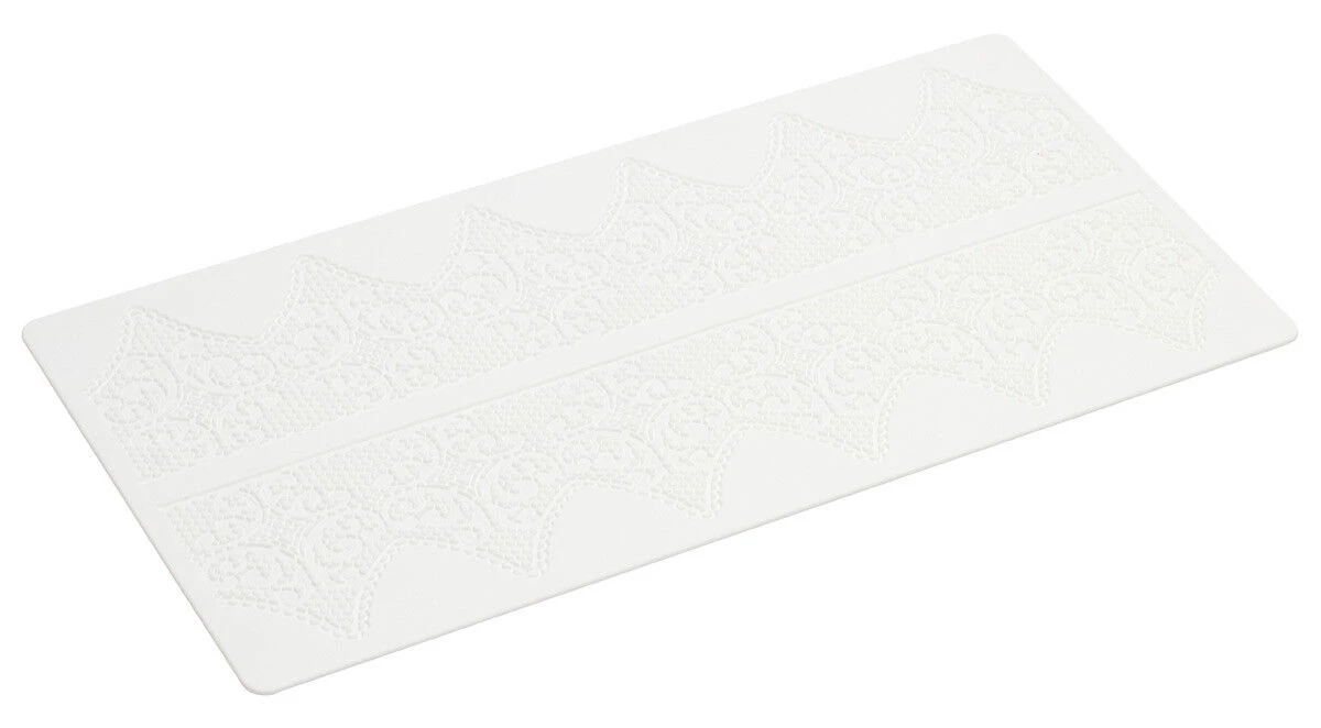 De Silikomart Tricot Fantasy decoratiemat is 40 cm lang, 20 cm breed en gemaakt van silicone. Voorzie uw taarten, cupcakes of koekjes van decoratieve en smakelijke suikerlagen.
