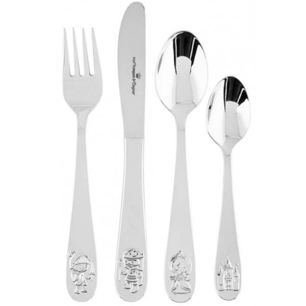 Het Van Kempen & Begeer Ridder Lancelot kinderbestek is vervaardigd uit roestvrij staal. Het bestek is voorzien van afbeeldingen van een ridder in de onderzijde van het heft.