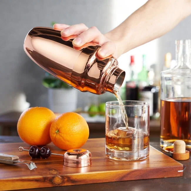 De Viski Heavyweight cocktailshaker Copper is gemaakt van roestvrij staal met een gepolijst koperen afwerking en heeft een inhoud van 488 ml. De shaker is voorzien van een ingebouwde zeef zodat de inhoud gemakkelijk te zeven is. Voeg bijvoorbeeld limoenpartjes of een takje munt toe om uw dranken een verfrissende smaak te geven. U gebruikt de shaker voor het maken van heerlijke cocktails.