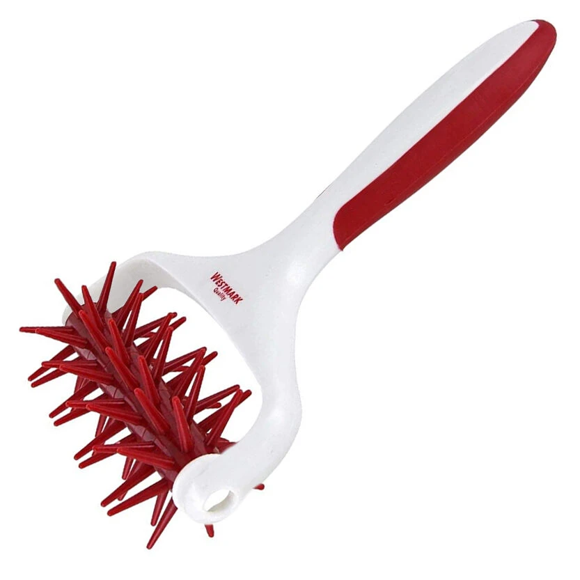 De rode deegperforator van Westmark is gemaakt van kunststof en heeft een compacte afmeting. Gebruik de roller om gaatjes te prikken in uw deeg om te voorkomen dat het gaat rijzen of dat er luchtbellen onder ontstaan. De roller is voorzien van een anti-slip handgreep en gemakkelijk te demonteren voor een eenvoudige reiniging.